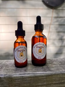 Propolis is a resinous substance that honey bees produce by mixing enzymes and beeswax with exudate gathered from tree buds, sap and other botanical sources. We take propolis collected in our hives and dissolve it in gluten free vodka, gin, or grain alcohol to capture the full spectrum of its essential beneficial compounds.